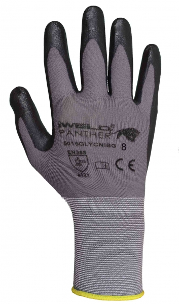 Panther Lycra/nylon, nitril tenyér mártott védőkesztyű, 8-as
