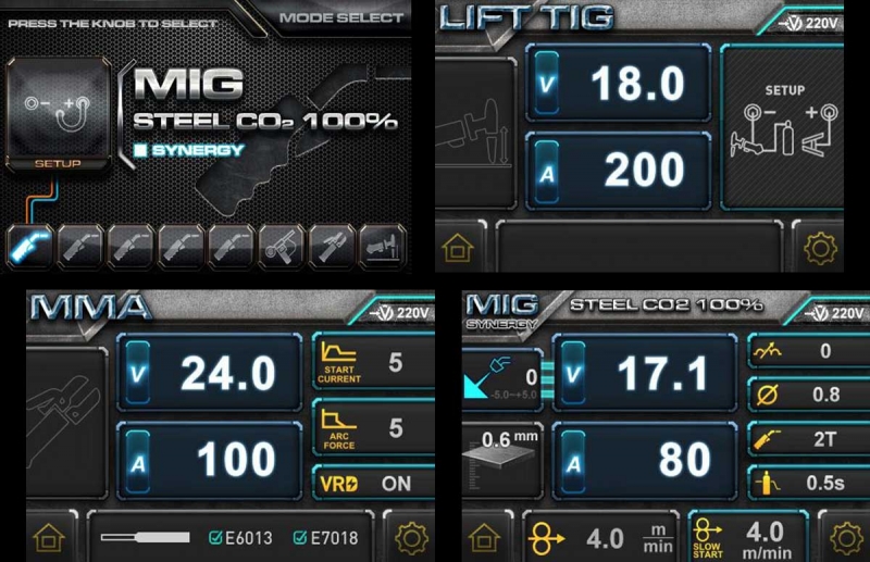 Szinergikus vezérlésű, hordozható MIG/MAG, MMA, Lift TIG hegesztő áramforrás.