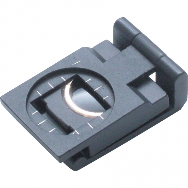 15mm átmér'. 15mm átmér'jű üveg lencsék. 7x nagyítás. 25mm hatótávolság. 13mm négyszögletes látómez'. Inches fokbeosztás. 1/8" osztásköz. Használat után laposra összehajtható. Fekete porbevonatú alaptest.
