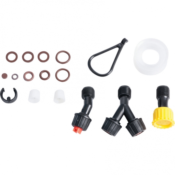 Bal- vagy jobbkezes használatra alkalmas. Permetezőcső tartós üzemre állítható működtető karral és négy állítható szórófejjel, melyek a markolatra pattintva tárolhatók. Nyomópumpa kar markolattal és akasztófül a tároláshoz. Nyomásoldó szelep. Állítható szövet vállheveder.
